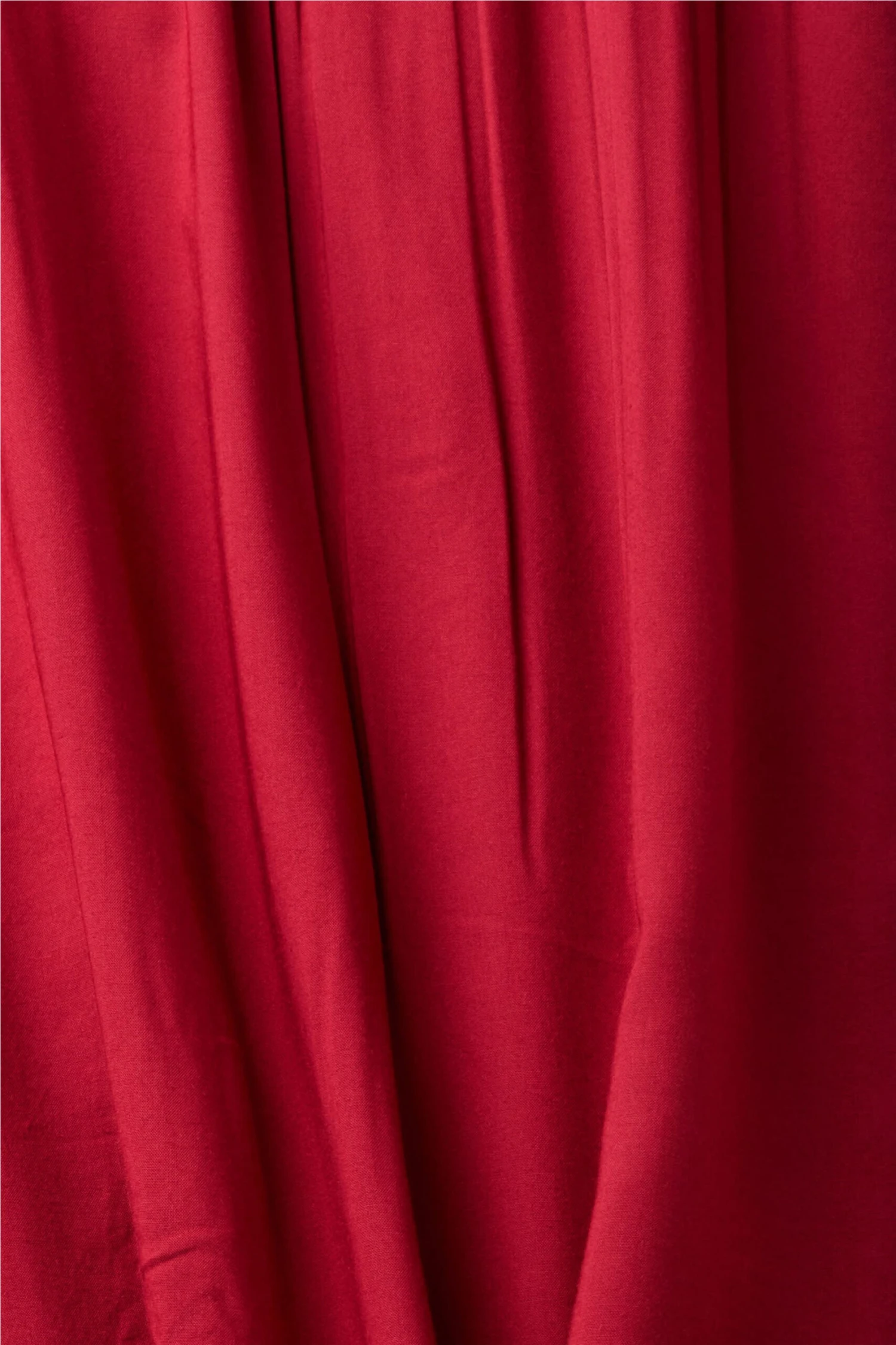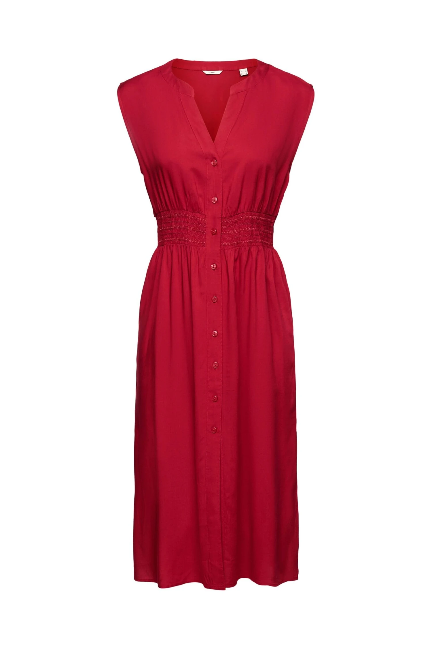 * Webstoff aus LENZING™ ECOVERO™-Viskose * LENZING™ ECOVERO™: Viskosefasern, die aus nachhaltigem Holz und Zellstoff aus zertifizierten und kontrollierten Quellen gewonnen werden. * V-Ausschnitt mit Stehkragen * Duchgehende Knopfleiste * Geraffte Details in der Taille * Midilänge * LENZING™ ECOVERO™ ist ein Trademark der Lenzing AG. Pflegehinweise: 30°C Pflegeleicht, Nicht bleichen, Nicht im Wäschetrockner trocknen, Mäßig heiß bügeln, Nicht trockenreinigen