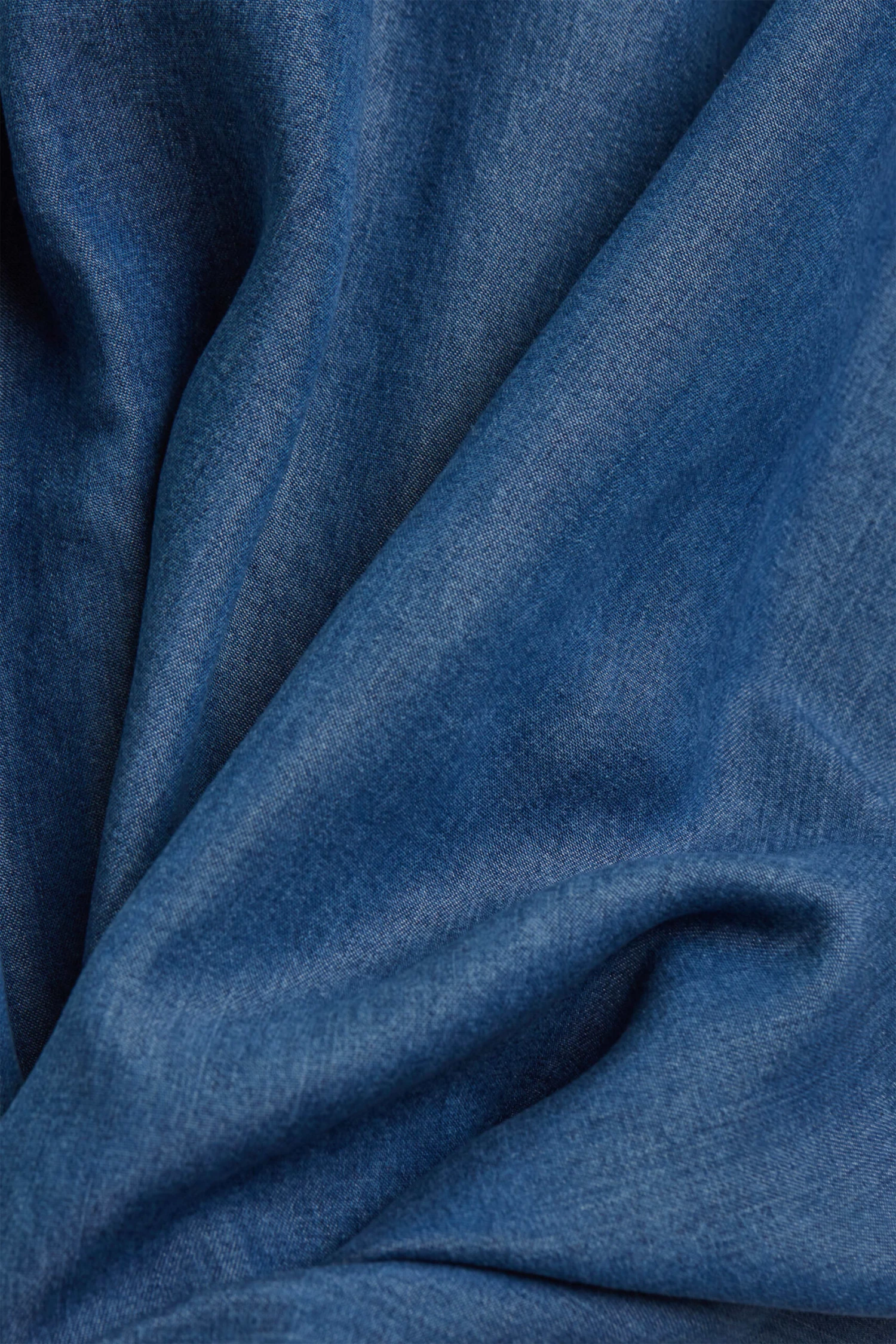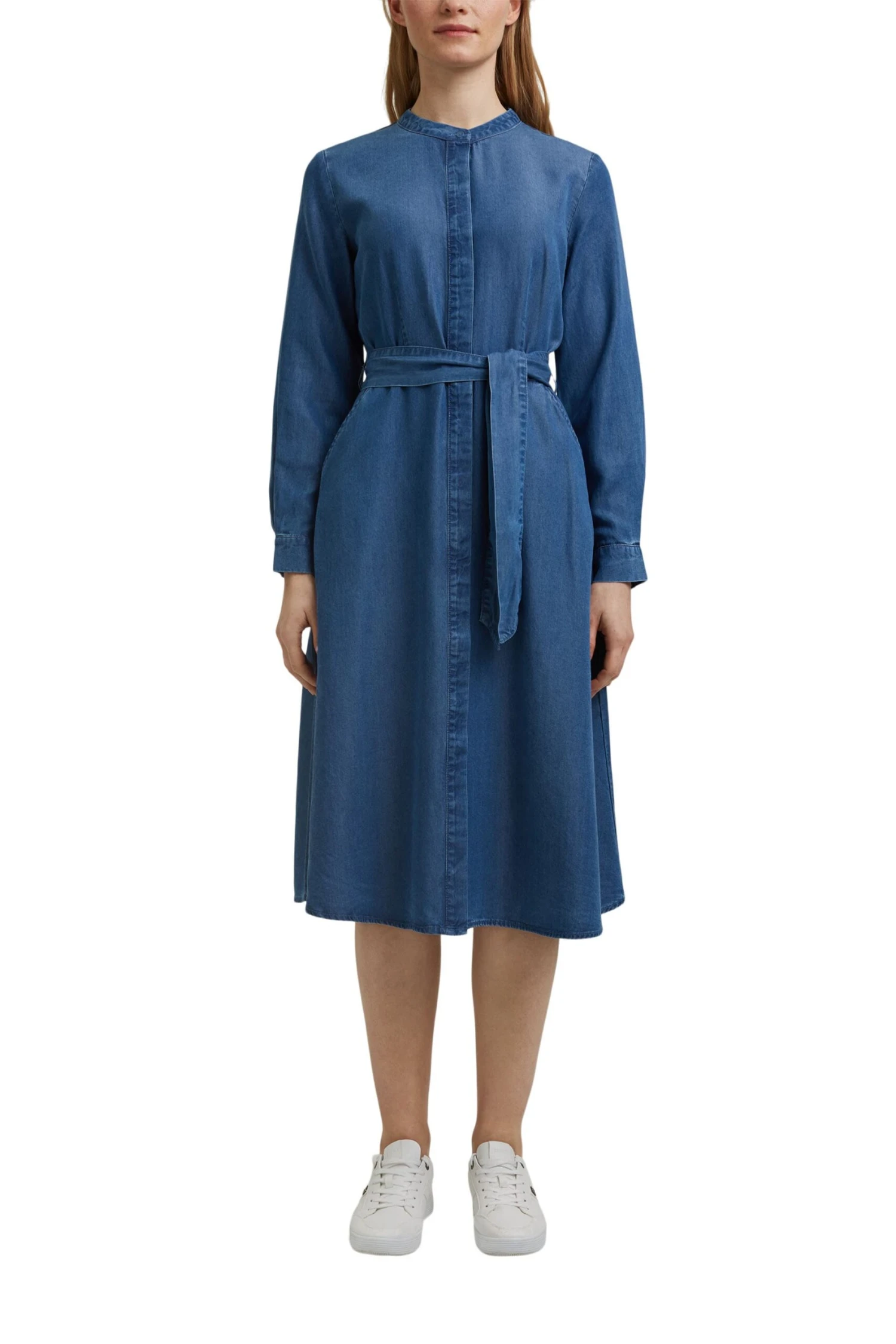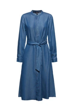 * Fließende Qualität in Denim-Optik: hautfreundlich, weich im Griff, hohe Atmungsaktivität * Kleiner Stegkragen mit durchgehender, verdeckter Knopfleiste * Abnehmbarer Bindegurt in der Taille * Lange Ärmel mit geknöpften Manschetten * Zwei seitliche Eingriffstaschen * Modische Midi-Länge * Tailliert mit ausgestelltem Rockteil Pflegehinweise: 30°C Pflegeleicht, Nicht bleichen, Nicht im Wäschetrockner trocknen, Mäßig heiß bügeln, Nicht trockenreinigen