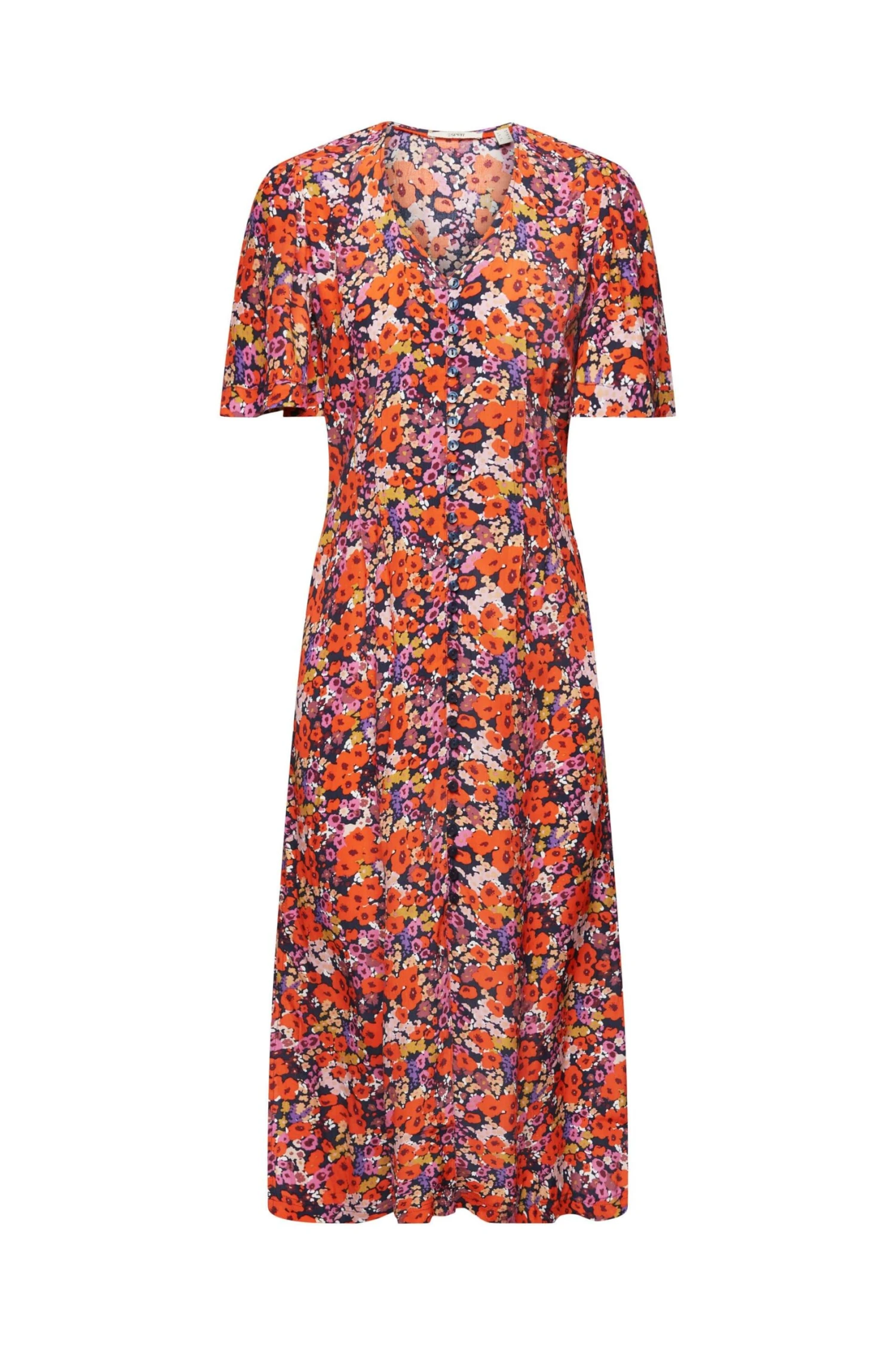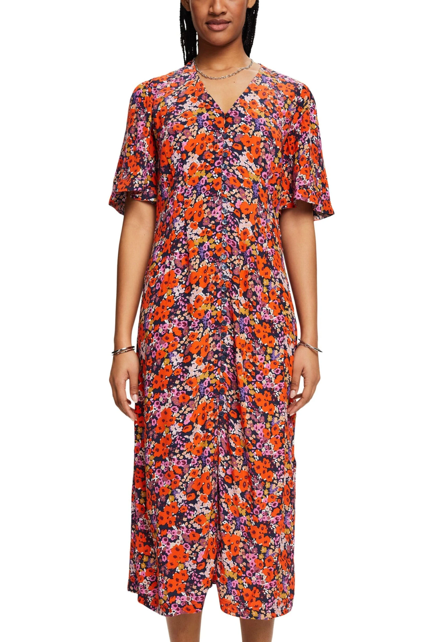 ESPRIT Kurzärmeliges Midikleid Mit Blumenmuster Navy