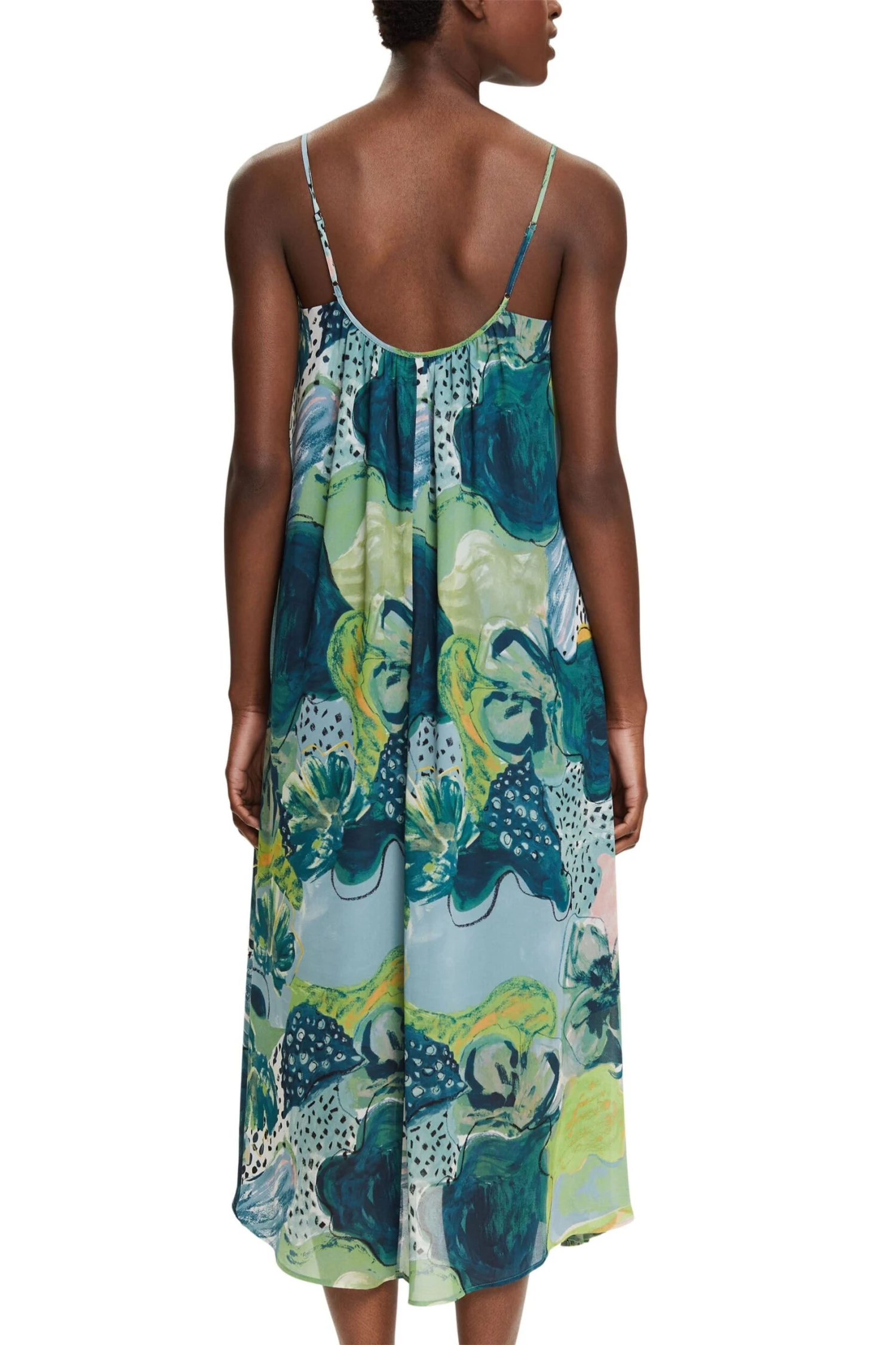 * Zart fließender Chiffon mit Muster * Blickdicktes Unterkleid * V-Ausschnitt * Längenverstellbare Spaghettiträger * Weite, ausgestellte Passform * Maxilänge Pflegehinweise: 40°C Pflegeleicht, Nicht bleichen, Nicht im Wäschetrockner trocknen, Nicht heiß bügeln, Nicht trockenreinigen