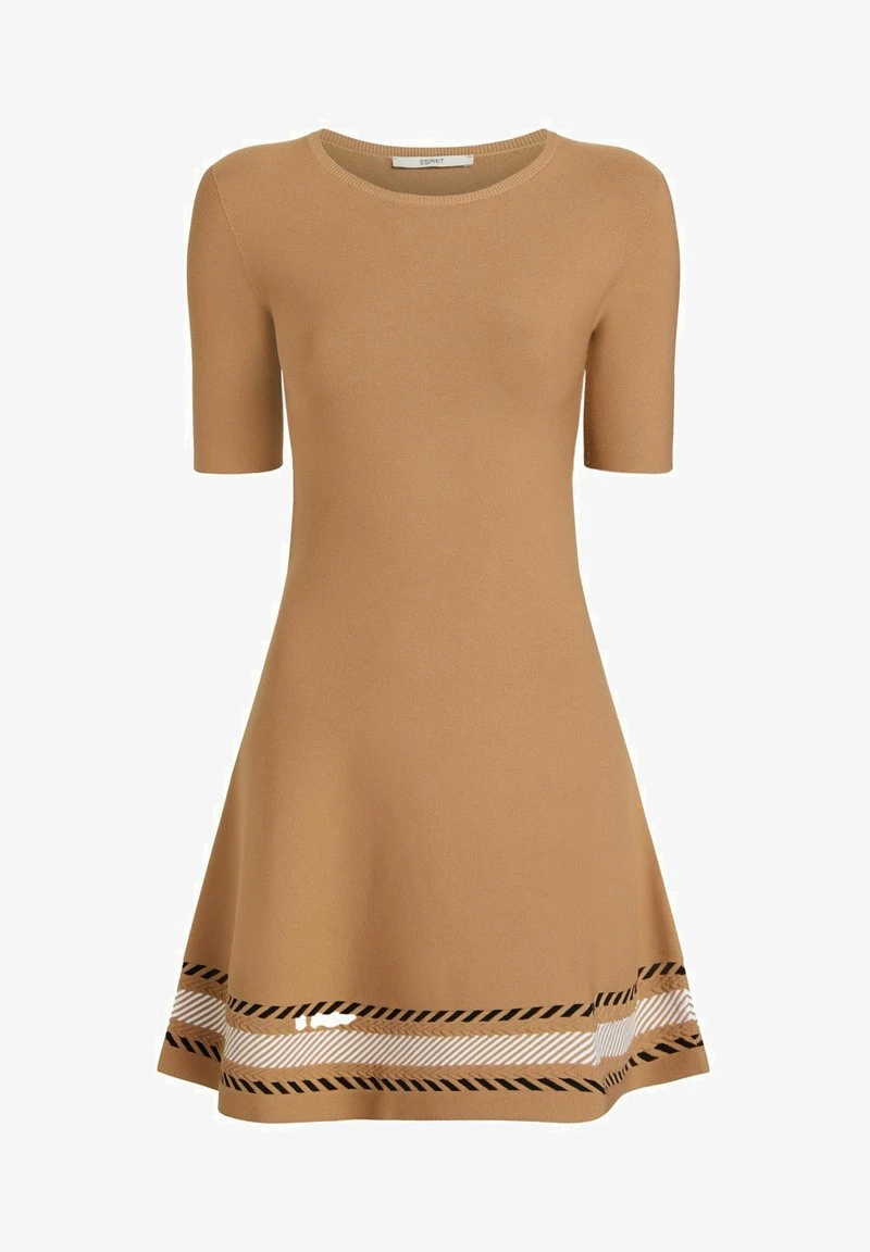 ESPRIT NAHTLOSES MIT HERRINGBONE- – Strickkleid – Camel